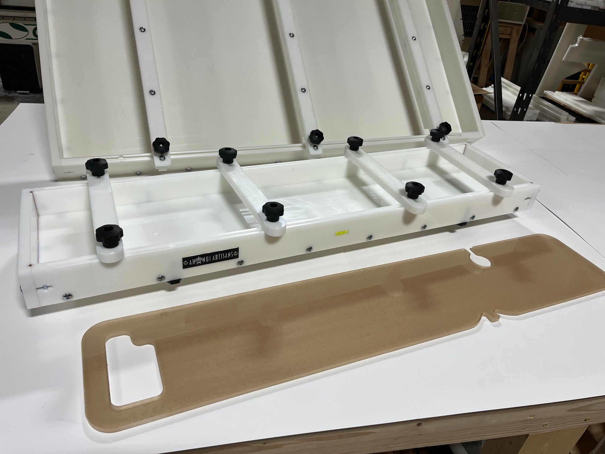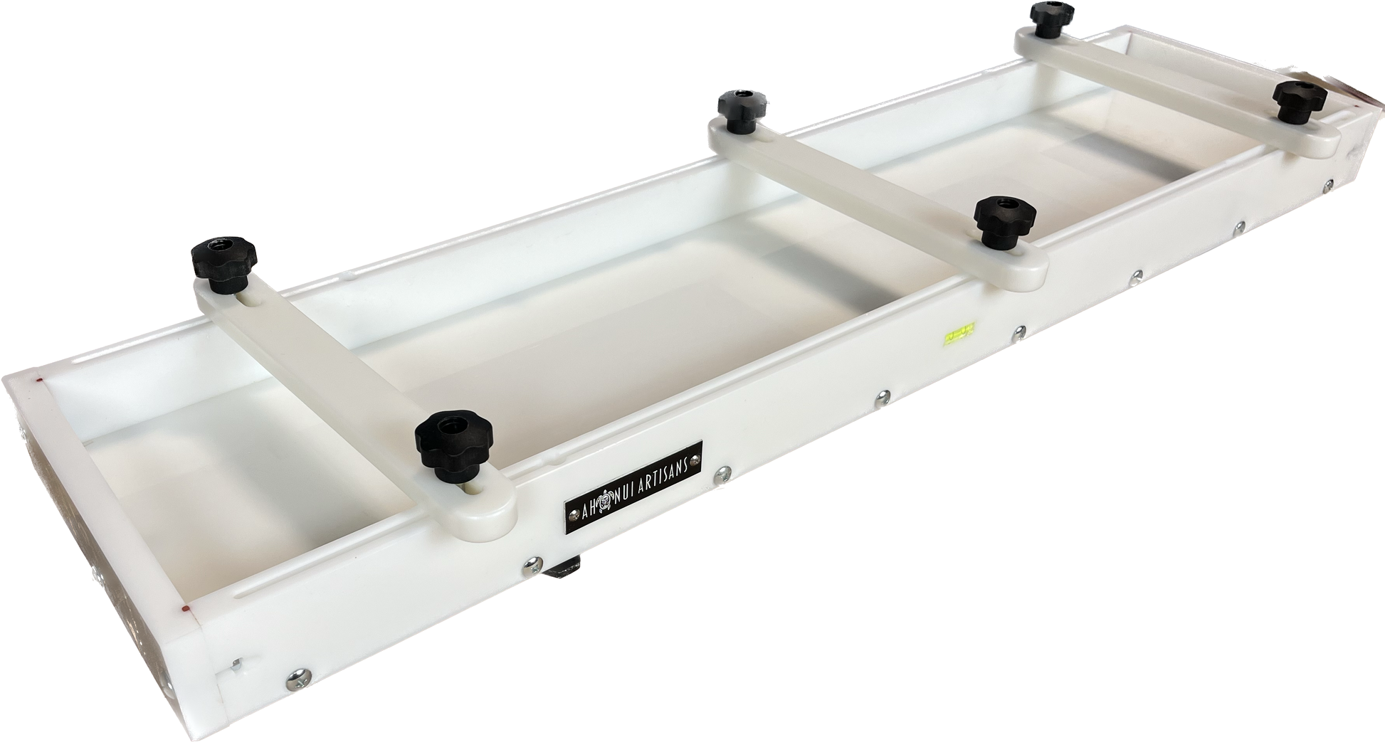 The Original Reusable HDPE Epoxy Resin Form with integrated T-slots w/ clamping hardware.  We call this our 'Bath Caddy / Long board' form.