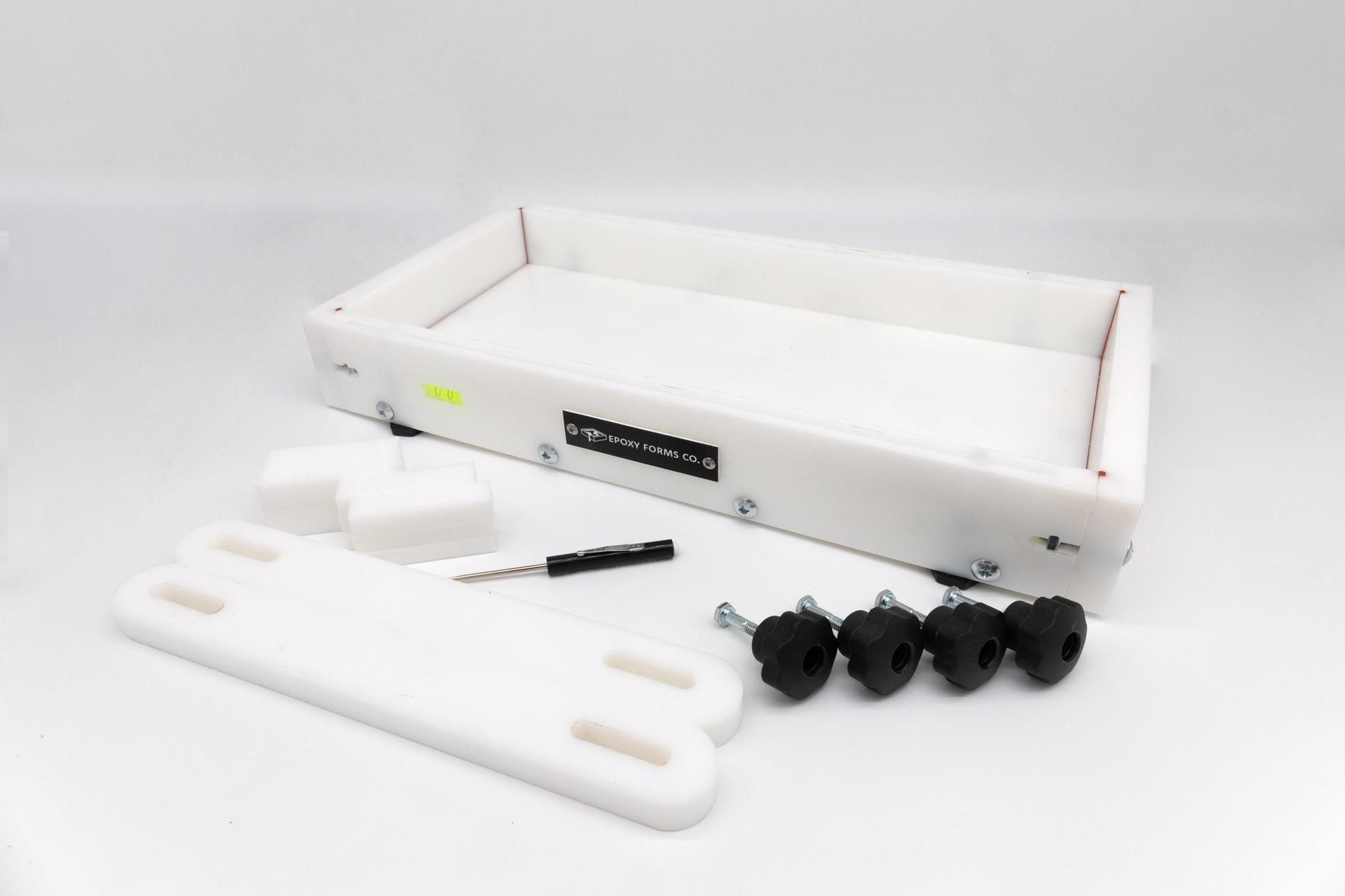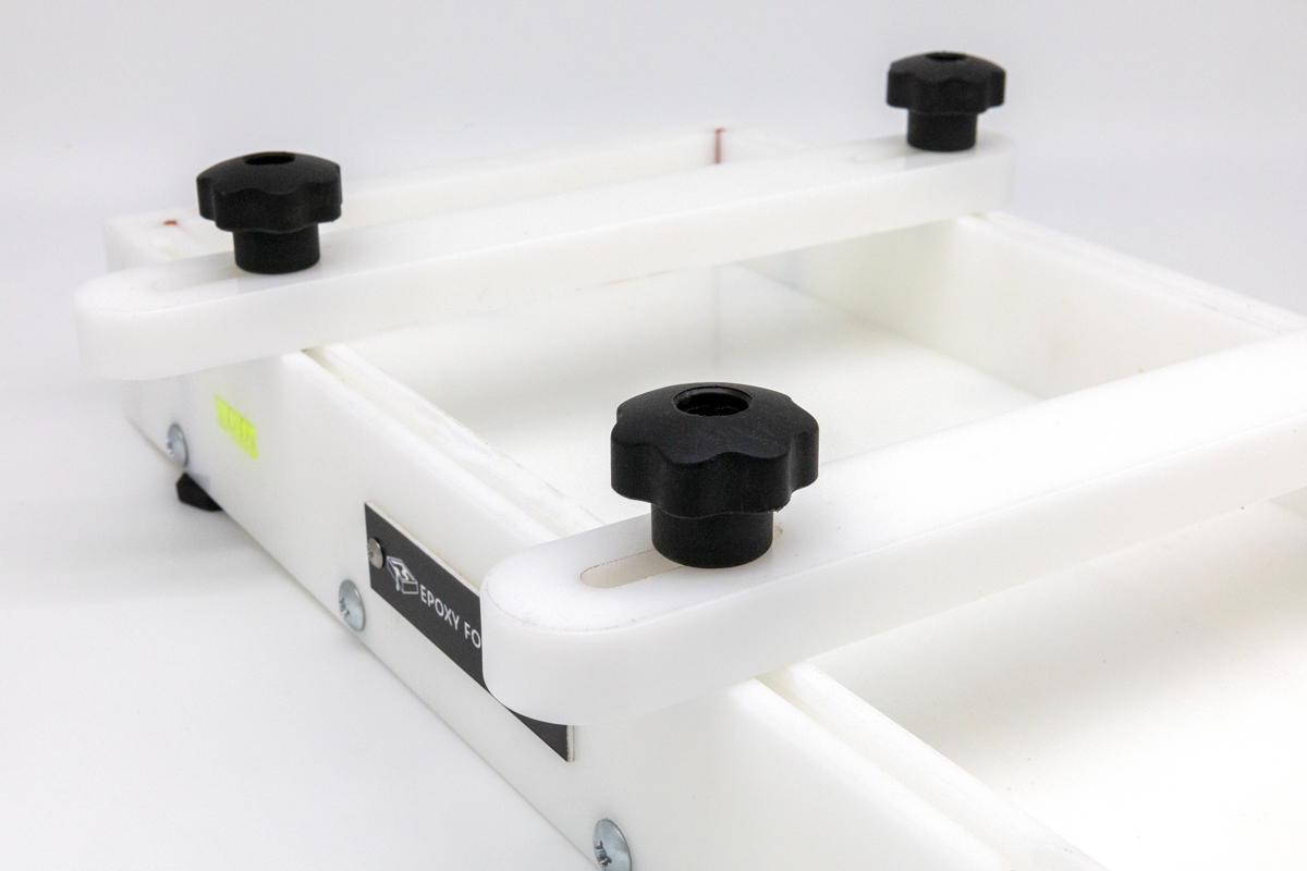 The form also comes with integrated T-slots for attaching your clamp hardware to the side walls. This allows you to use the three included HDPE clamps and hardware, with the help of the 12 included HDPE clamp blocks, to secure your wood in place before making your pour to ensure they don’t move or float during the curing process. The blocks being made from HDPE ensures that your resin does not stick to them in case of over-pouring.