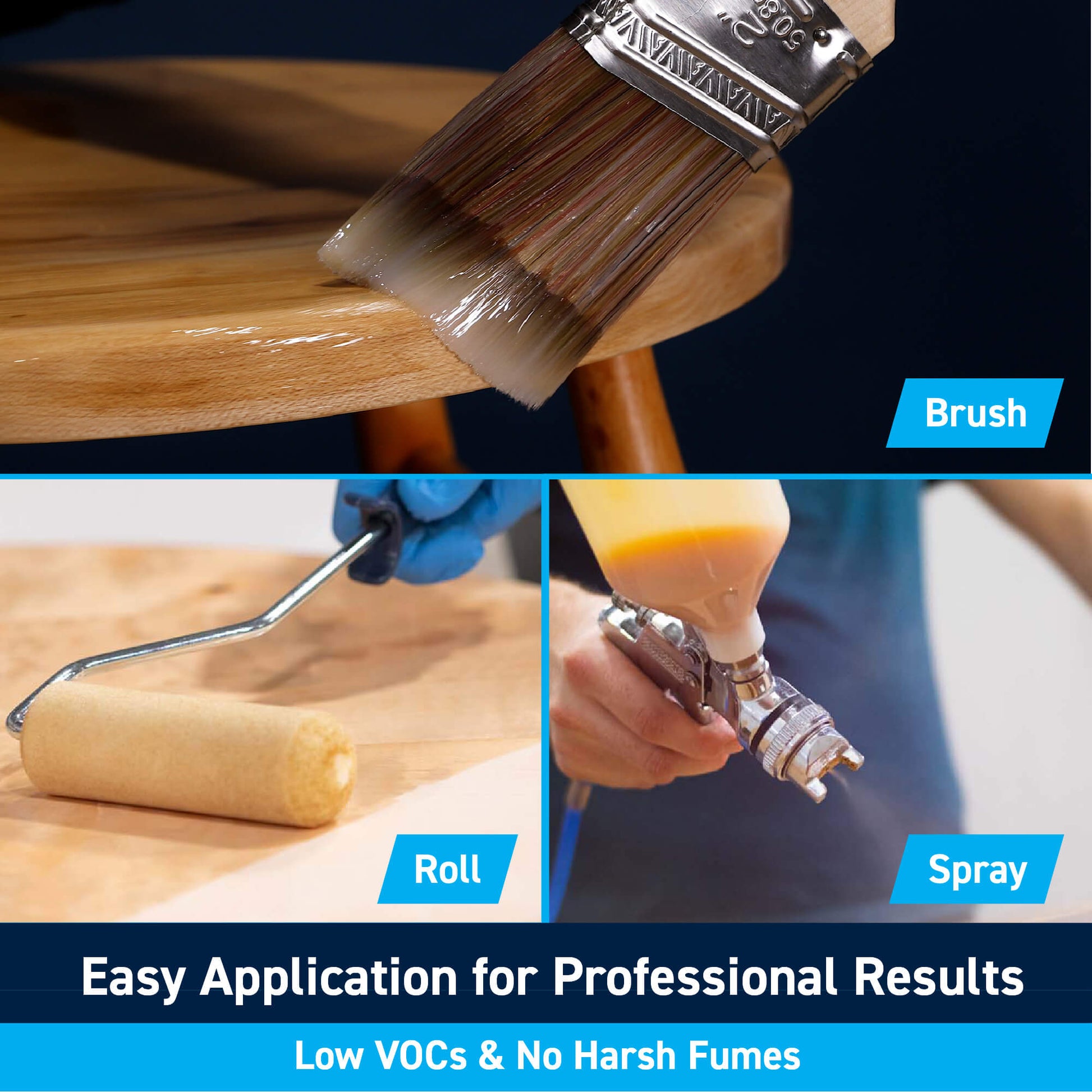 - Easy surface prep, just clean, sand, and wipe bare wood or previous varnish in good condition.