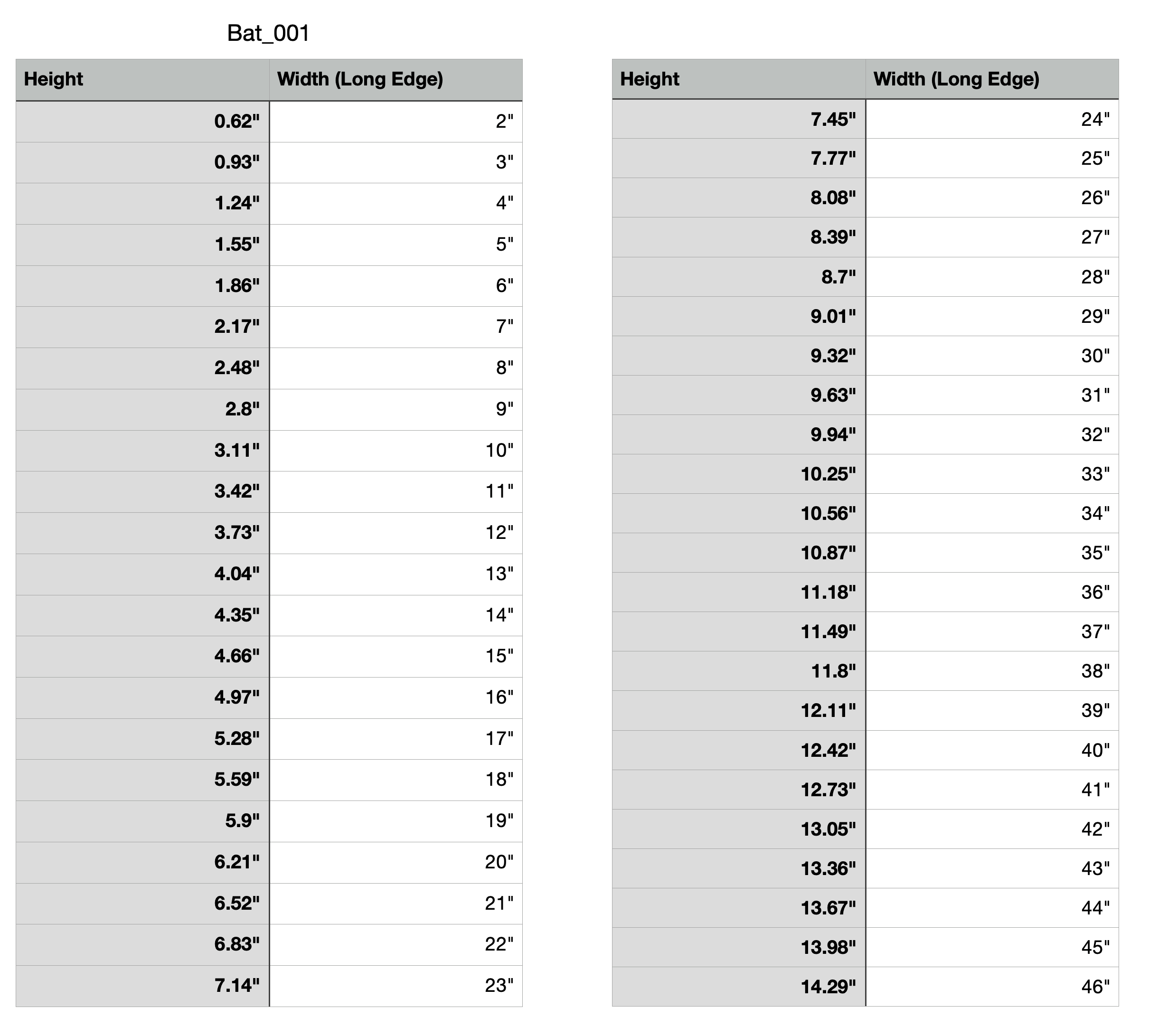 The size chart, including heights and widths, can be found in the product photos. Measurments are of the overall dimensions including handles on router templates.