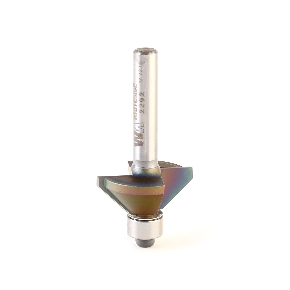 This chamfer bit is designed to cut a 45 degree angle on your work piece. Originally, the bit was specifically designed to fit in trim routers with its 1″ large diameter. Whether you are using the 45° as a decorative edge or making mitered corners, the two flute carbide tipped design will give you an accurate cut every time.