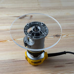 Is your factory router base not large enough? We have you covered. This is our 8 inch round router base that fits the Dewalt DWP611 or DCW600B. It's made out of 3/8" cast acrylic to be very durable! It has countersunk holes so that you can use the factory screws. It is compatible with PC-style router bushing sets.