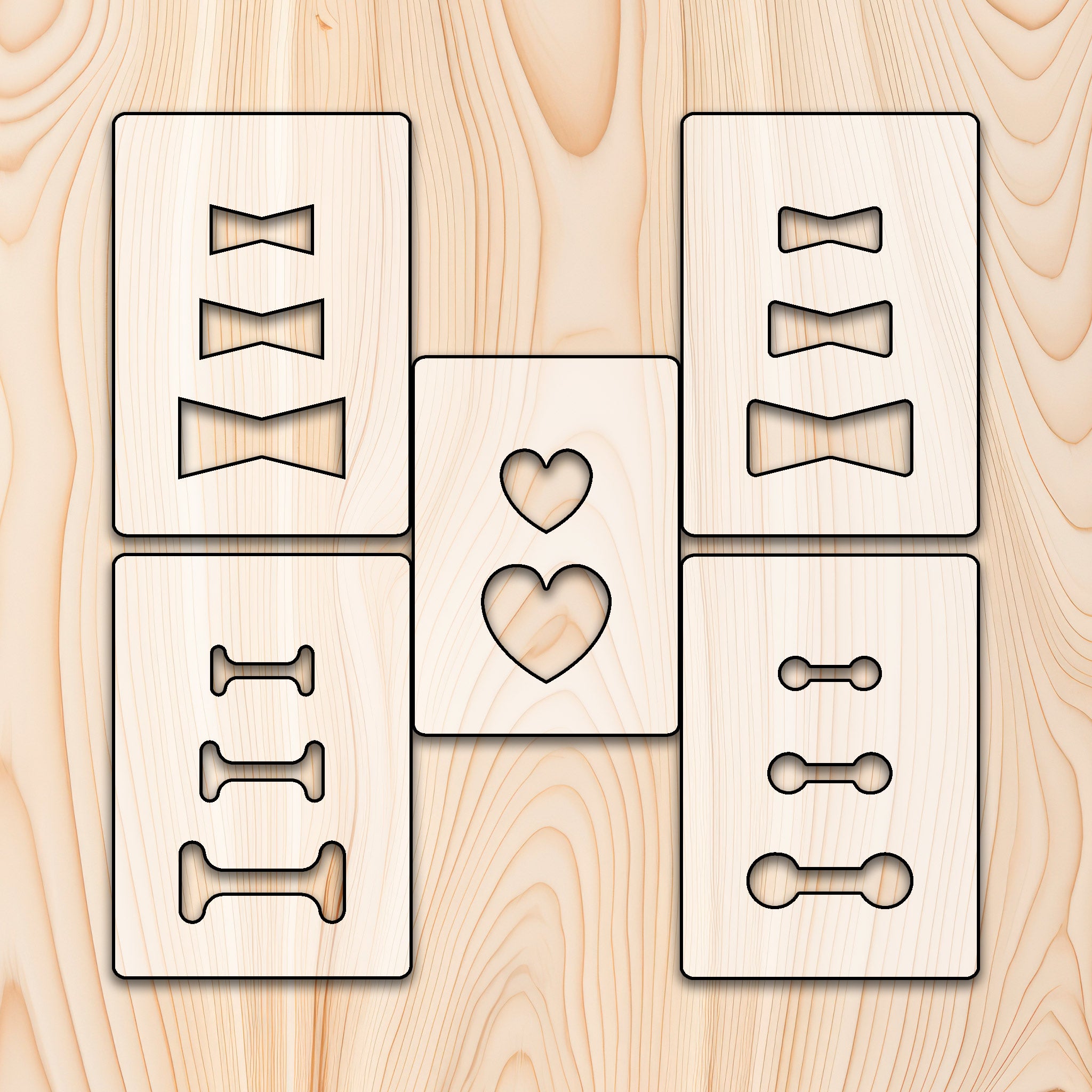 These bowtie inlay templates are perfect for stabilizing checks and cracks in your projects. Choose your style and start making perfect bowtie inlays! Each template comes with the positive of the inlay so you can create perfect bowties to match the negative.