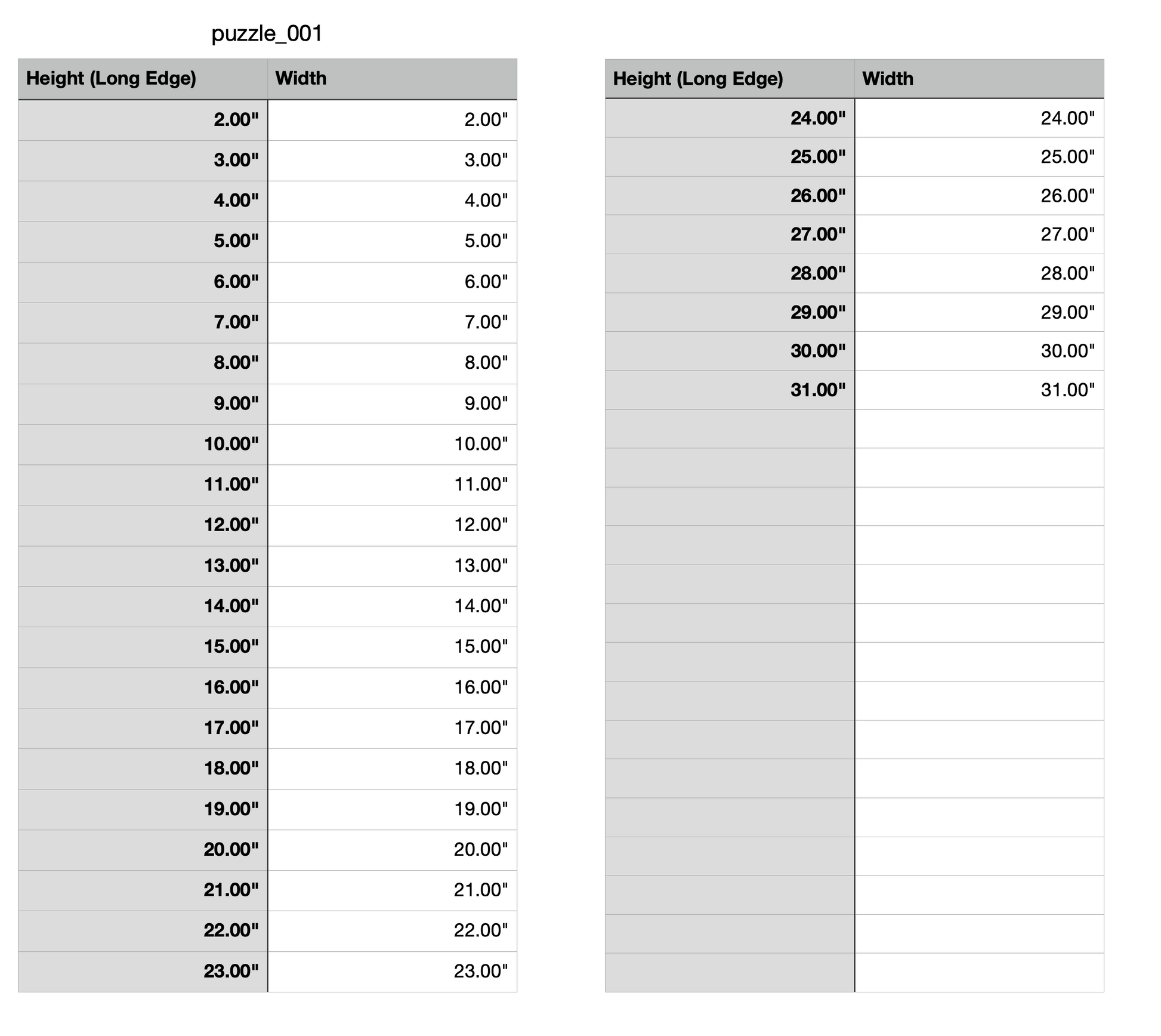This template is a single piece puzzle piece router template. It allows you to create wooden pieces that fit together and lock perfectly. You can lock together as many same sized pieces as you would like! If you need a puzzle piece a specific size, contact us to let us create the exact size you need.