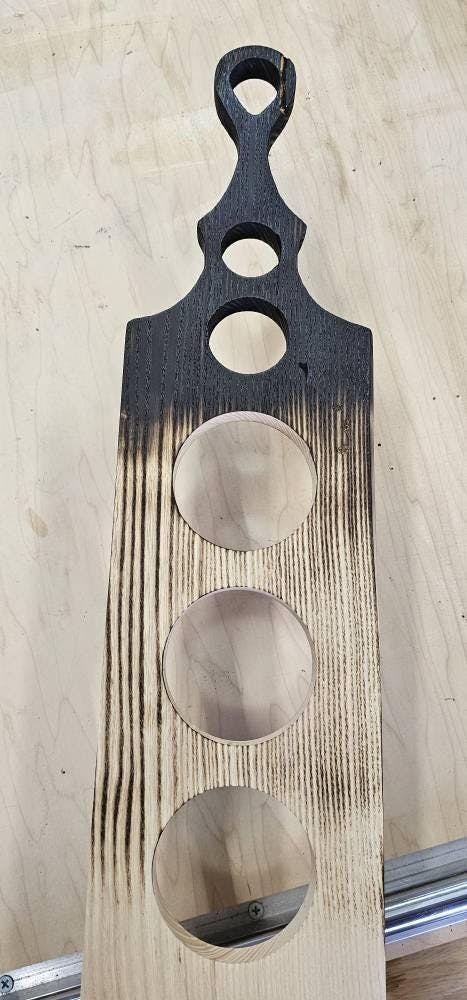 2. Secure the Template: Place the acrylic template on top of your wooden plank, aligning it carefully to achieve the desired design. Our clear templates allow you to see the grain while laying out your position for the most control of your finished wood board. Secure the template in place using clamps or double sided tape to prevent any movement during the cutting process.