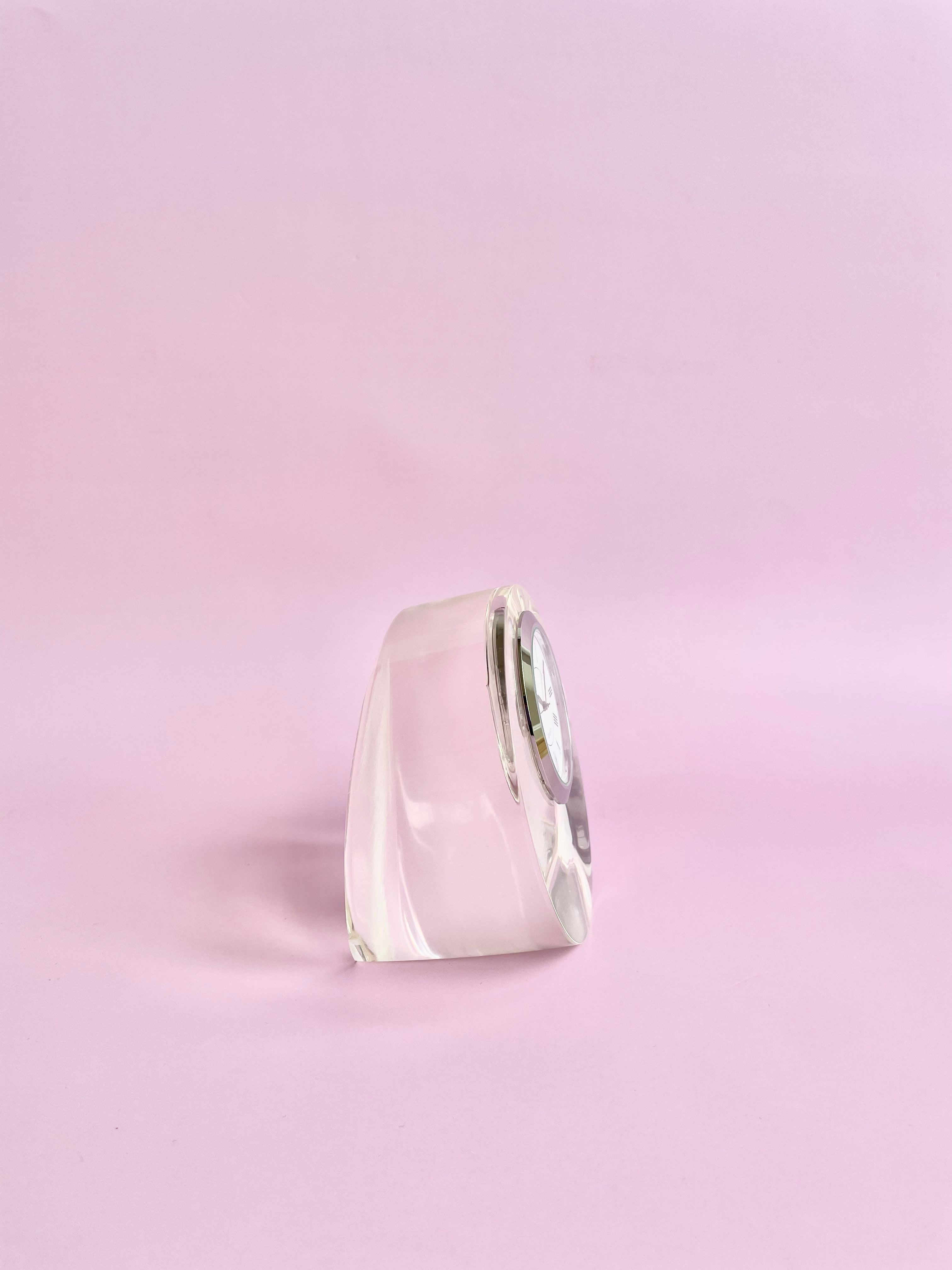 - Circle clock: 3.75” tall x 4” wide, deepest point: 2.3”, shallowest point: 1.25