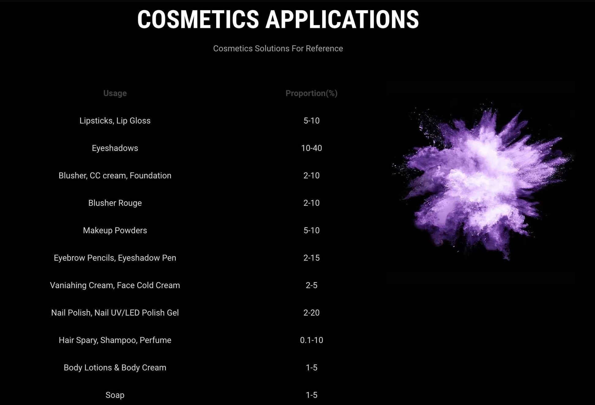 💎 1g of pigment per 1-5oz of epoxy (1g per 4-8oz for Ghost Series). 25-50g of pigment per gallon of peelable paint. Please see pigment portion guide for help. All of these pigments are 10-60 microns. NON-TOXIC Highest Quality Mica, Titanium Dioxide - FDA approved for cosmetic use (Melting point 1200-1800°F) (pH : 6.0-9.0 4% H2O) BEST IF ADDED TO A CLEAR BASE LIQUID OVER A BLACK BASE FOR TRUE COLOR